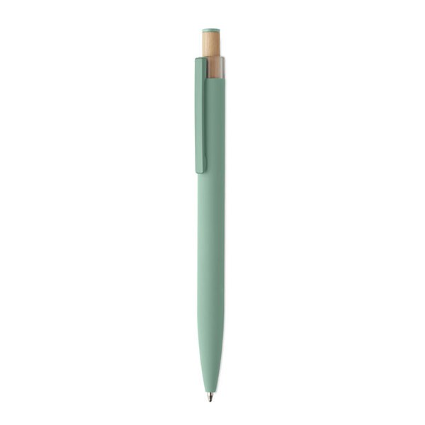 Recycled aluminium push ball pen with bamboo button with matching colour detail and matching metal clip.
