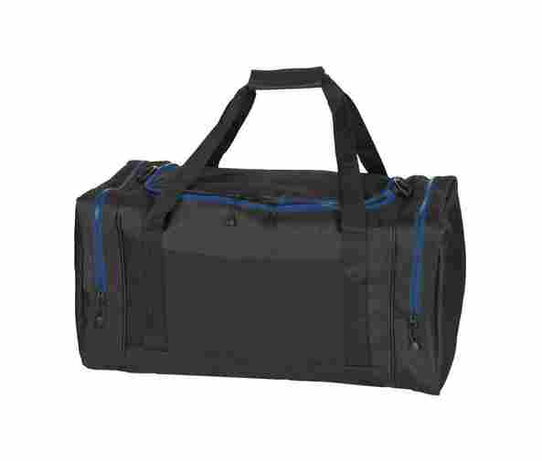 100% polyester. 55 litre bag. Contrast zips. 2 side pockets. Main compartment. Handles and removable reinforced shoulder strap. Front print are: 18x20 cm. Side print area: 20x20 cm.
