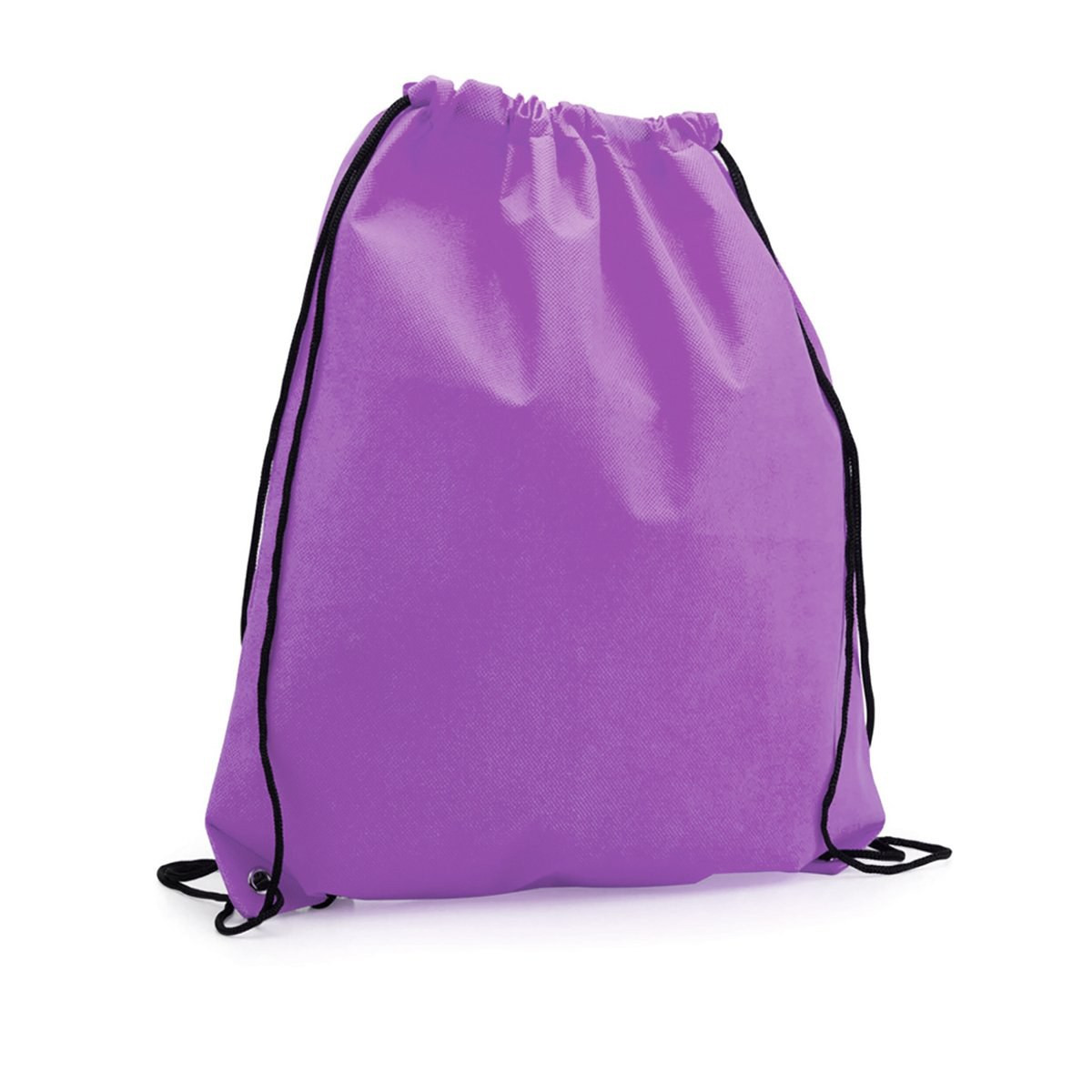 Drawstring backpack in soft non-woven in cheerful colors and in a wide range of tones. With black self closing strings and reinforced corners with metal eyelets.