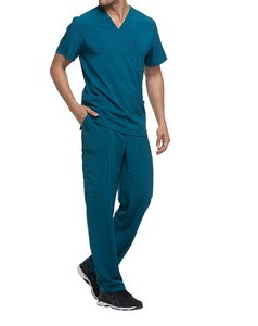 Dickies Medical DKE645 - Caribbean Blue - Men's Utility V-Neck Top with Multi-Pocket Design