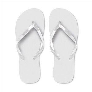 Beach slippers in polyethylene sole with pvc strap.