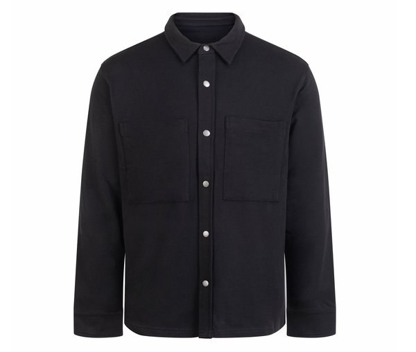 Piqué knit exterior with a brushed interior. 2 chest pockets. Metal snap-button closure.