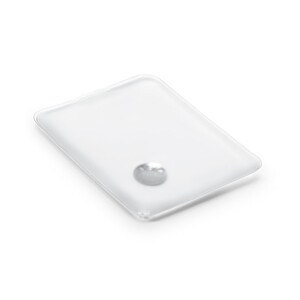 Heated pouch in PVC that generates heat instantly by squeezing the metal piece inside. Promotional product