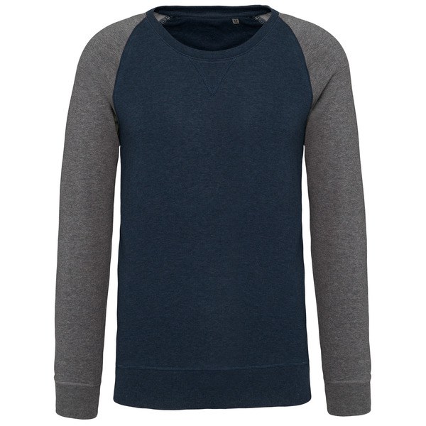 This two-tone organic raglan sleeve sweatshirt for men is available in various sizes from S to 3XL and in 4 different colors.