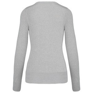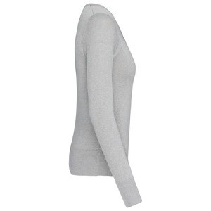 Ladies' V-neck jumper in a cotton-acrylic blend providing a professional look and soft comfort. This shaped jumper features a 50/50 cotton and acrylic mix, ensuring both durability and ease of care. The double layer neck rib and taped neck provide structural integrity, making it a reliable choice for everyday wear or as a part of a corporate uniform. For B2B clients, this blank knitwear is a stable canvas for customization, particularly embroidery, which sits well on the fine-gauge knit. For B2C customers, the shaped style offers a flattering feminine silhouette that works well over shirts or on its own. Available for bulk purchase, it is a staple for retail startups or organizations looking for high-quality, blank apparel.