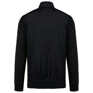 Double collar with inner neckline in 1x1 rib, elasticated cuffs and hem 1x1 rib (97% polyester/3% elastane).