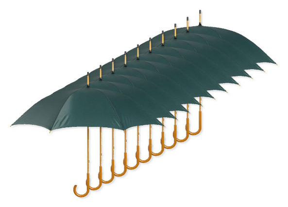 Pack of 10 GiftRetail KC5132 - Green - CALA Elegant Wooden Handle Windproof Umbrella