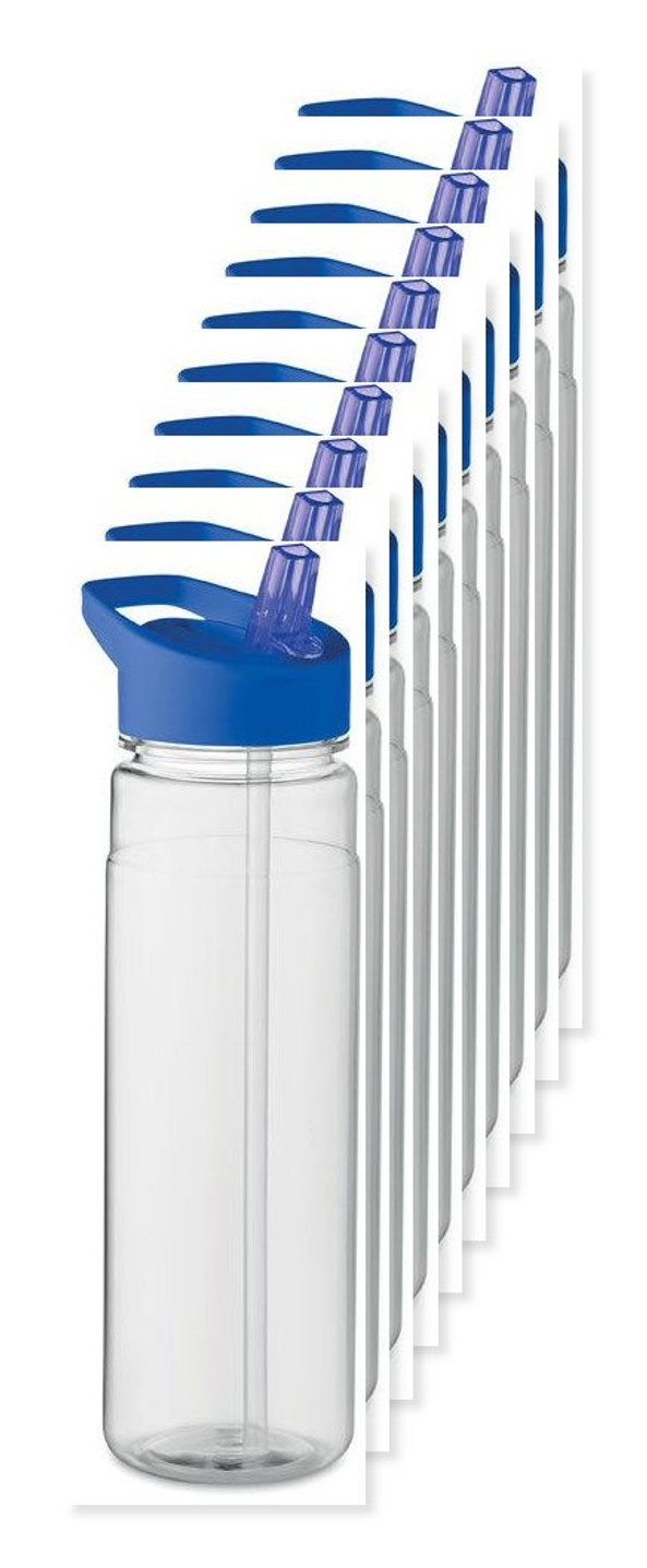 Pack of 10 GiftRetail MO6467 - Royal Blue - ALABAMA RPET Eco-Friendly 650ml RPET Bottle with Flip Lid and Straw