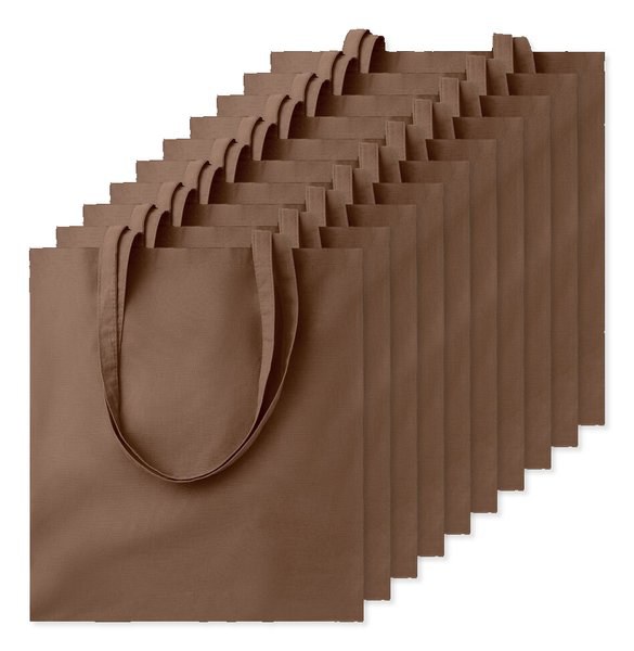 Pack of 100 GiftRetail MO9268 - Chocolate - COTTONEL COLOUR Eco-Friendly 140gsm Cotton Shopping Tote Bag