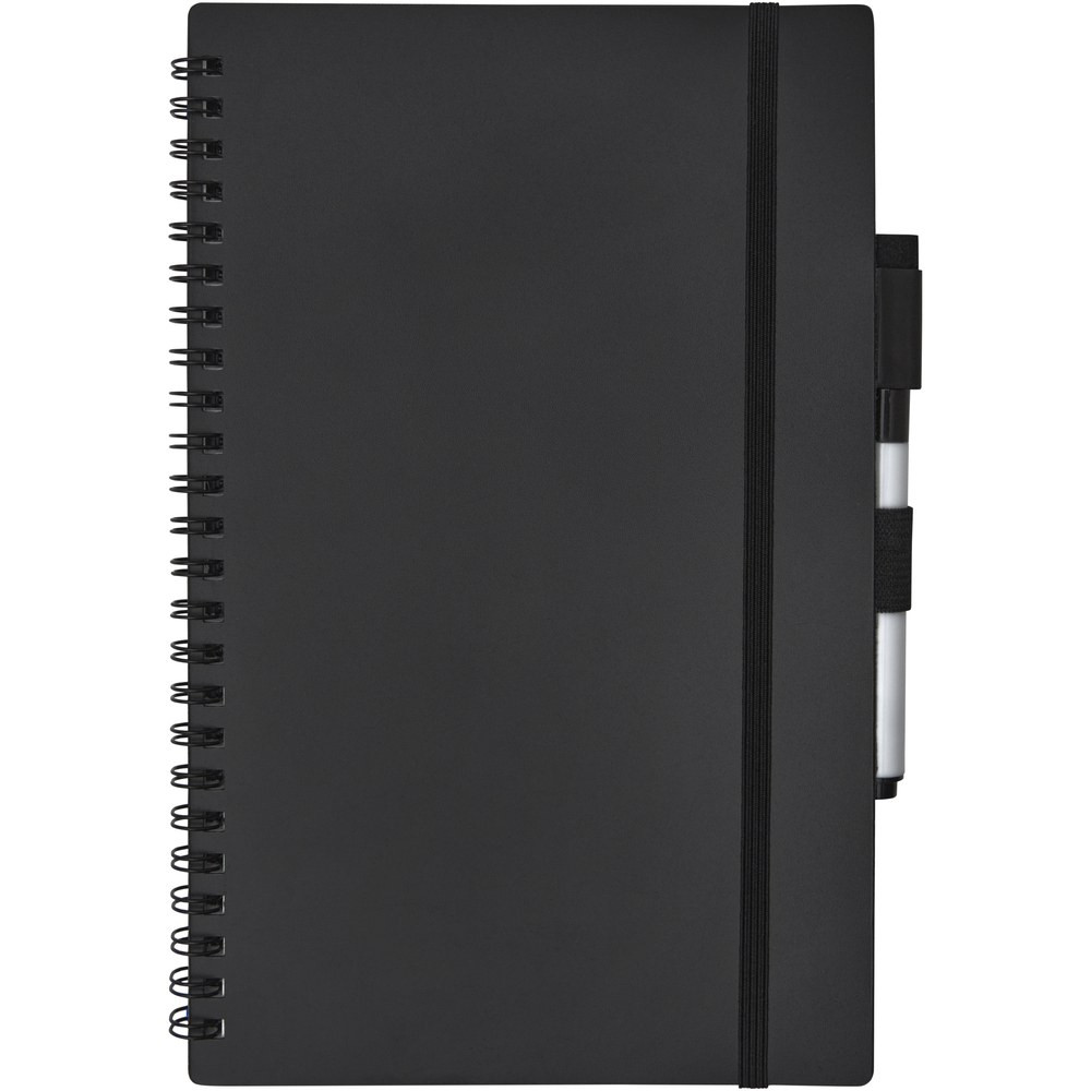 Sustainable notebook focused on reducing the use of paper to save the environment. After a while taking notes, drawing or brainstorming, the pages can be cleaned with the eraser on the marker to re-use the pages again. It can also be cleaned with a regular fabric cloth (not included). Features 20 sheets (40 pages) with half dotted and half blank layout, and a black writing marker.