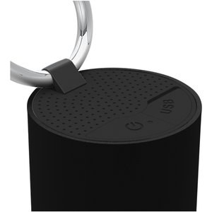 Wireless 3W light-up logo Bluetooth® speaker with antibacterial treatment. Double sound output for an unparalleled sound quality for a speaker this size. The ring speaker can be tilted to direct the sound in any direction. Has built-in microphone and conference call function. Capacity: 500 mAh - 3.7 V battery. Frequency: 50 Hz - 20 KHz. Sound output: 1 x 3 W. Impedance: 4 Ω. Bluetooth® 4.2. Net weight: 100 grams. Size: ∅ 50 mm x 45 mm. Delivered with a gift box with magnetic closure, made out of recycled paper.
