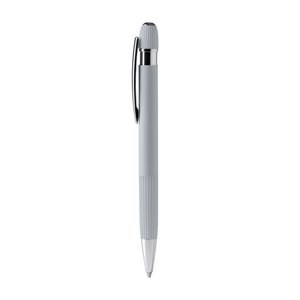 GARET Aluminium ballpoint pen with striped grip in metallic finish and touch pointer