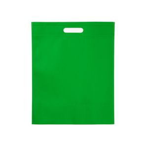 80 gsm non-woven bag with resistant die-cut handles and heat-sealed edges.
