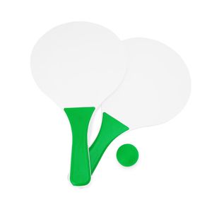 Racket body in white and handle in same colour as ball.