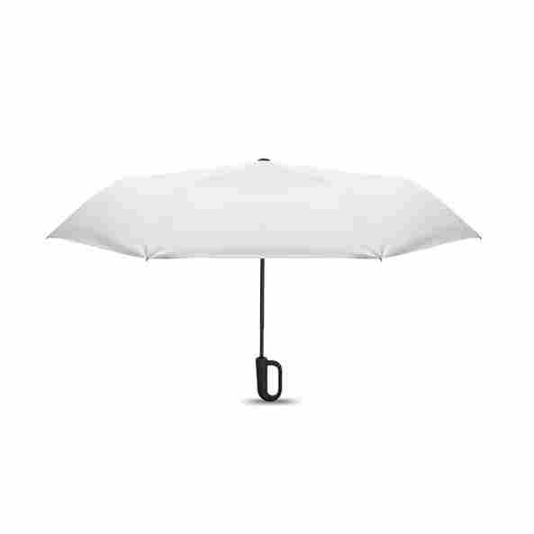 Foldable 21'' windproof umbrella with full black plating fibreglass frame with 2 sections.