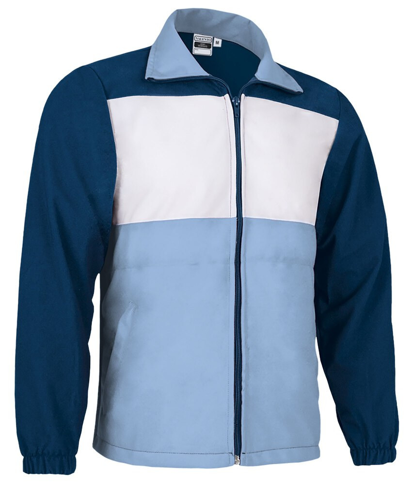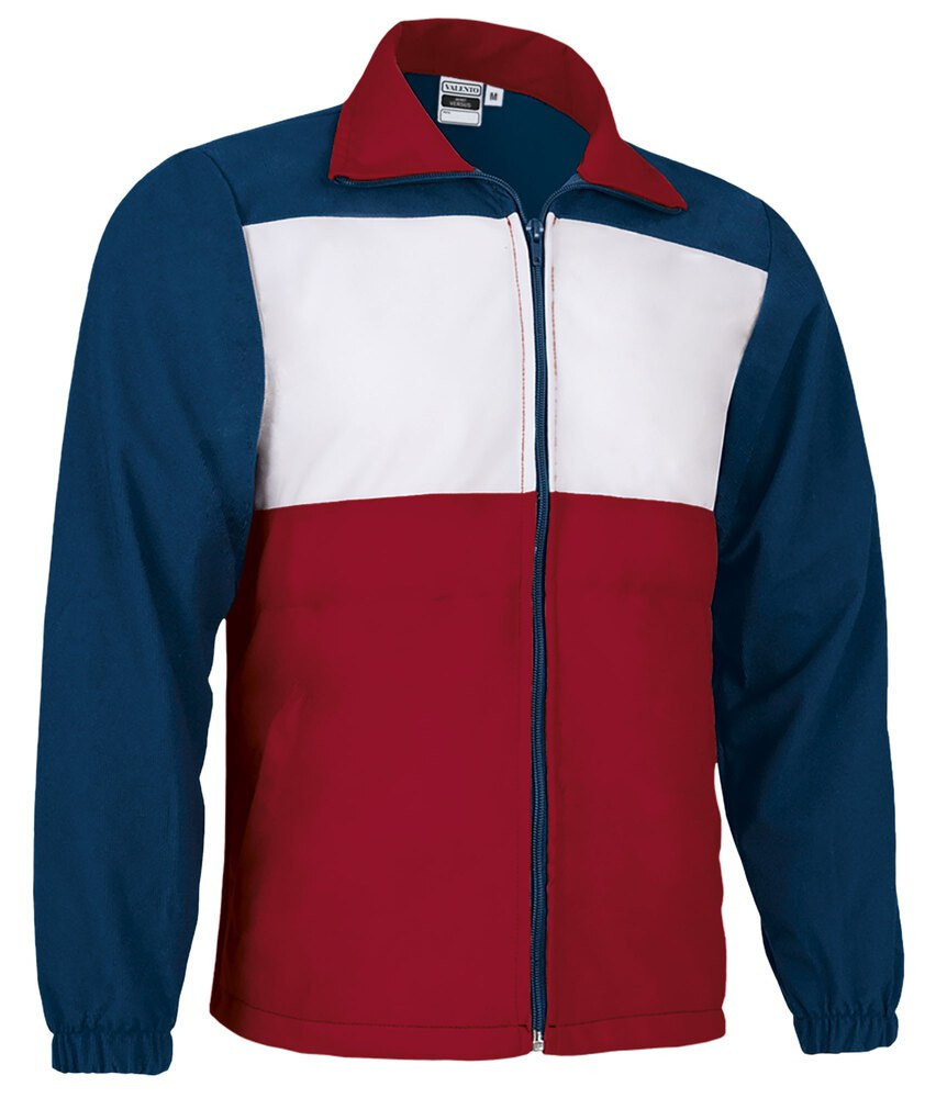 Three-Tone Tracksuit Sports Jacket.Made of micro-corduroy fabric with outer brushed for a superior finish. Stand-up collar with full-zip front closure for effortless functionality and practicality.Elasticated cuffs for comfortably fitting.Two slanted zippered waist pockets for a secure and convenient storage.Suitable marking methods: screen printing, embroidery, transfer printing, badges, shields. Ideal as sportswear and sports school uniform, pairs well with VERSUS sweatpants, sold separately.