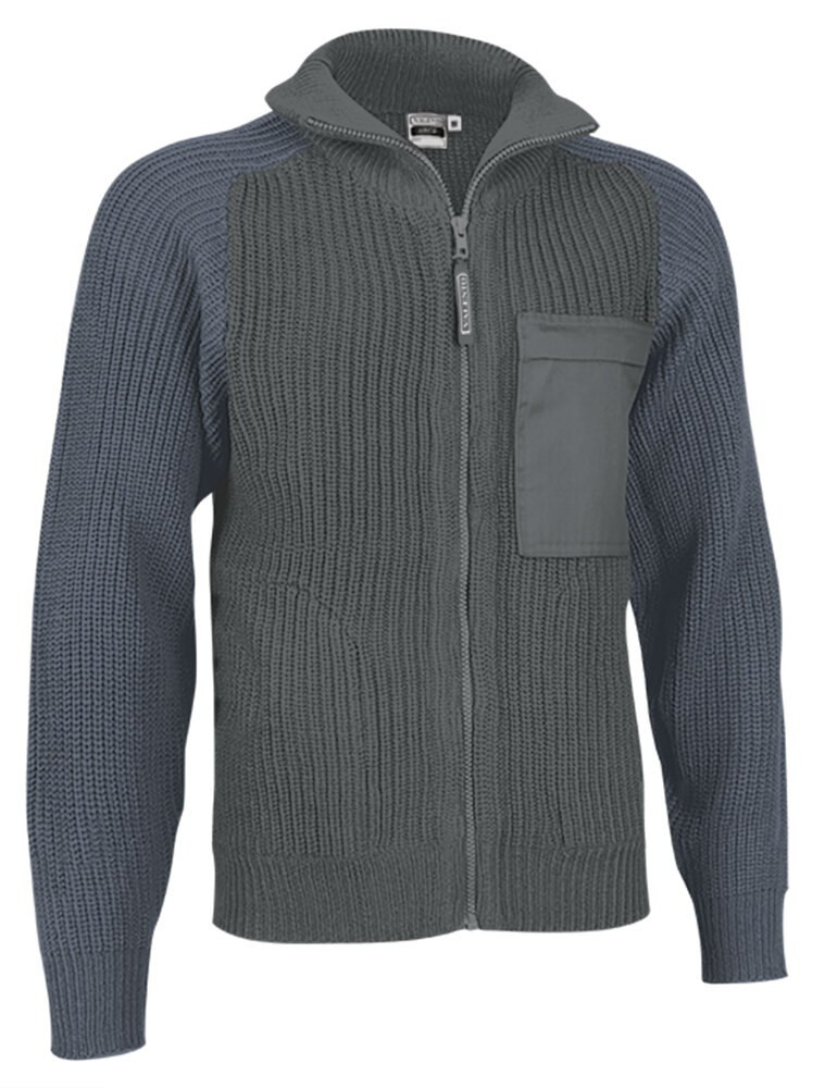 Two-Tone Full-Zip Thick Knitted Cardigan.Made of thick 100% acrylic knitted fabric, for a soft and comfortable feel with excellent breathability and optimal thermal insulation. Stand-up collar with full-zip front closure for effortless functionality and practicality.Thick elasticated ribbed cuffs and waistband for comfortably fitting.Two slanted waist pockets for convenient storage. Suitable marking methods: embroidery, stitching, and more. Ideal as workwear in chilly environments.