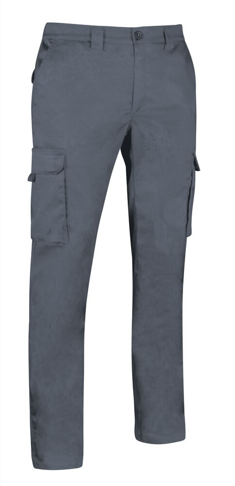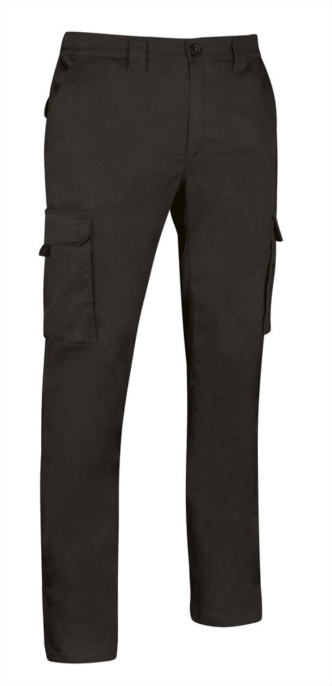 Multi-Pocket Work Trousers with Thermal Effect. Made of a sturdy cotton twill fabric blended with polyester for strength and durability and an inner brushed for excellent thermal insulation.Button-and-zipped flap fastening, back elasticated waistband and belt loops for a better adjustment and a comfortable fit.Two slanted hip pockets, two side pockets and two back pockets, all four with velcro flap closure and a puller for easy opening and convenient storage.Double main seams and extra high-wear reinforcements with safety bartacks, ensuring long-lasting strength and durability.Suitable marking methods: screen printing, embroidery, transfer printing, vinyl application. Ideal as workwear and uniforms in chilly environments.