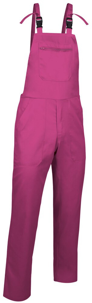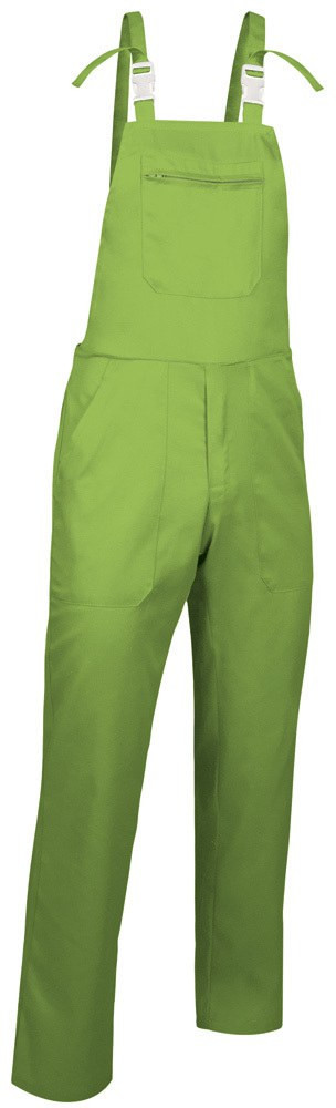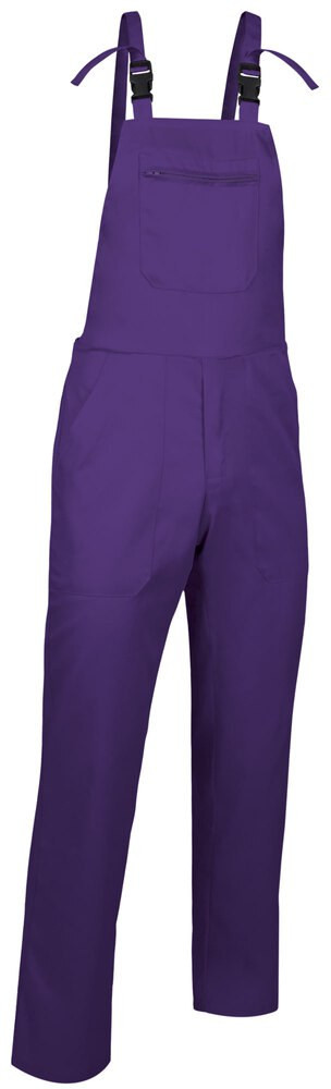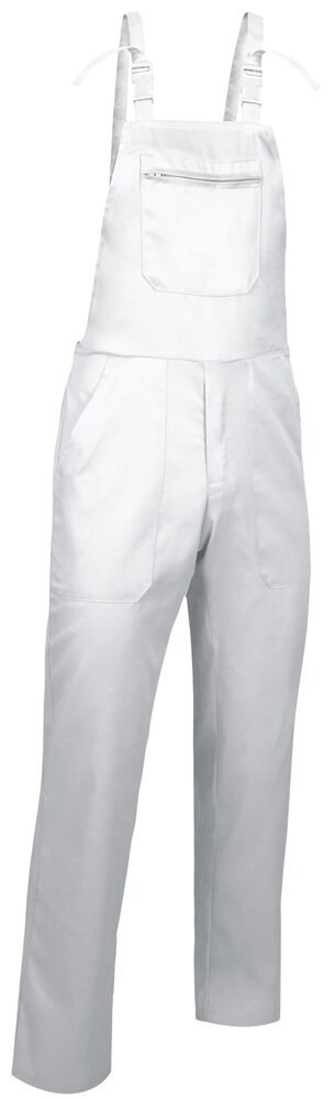 Dungarees. Made of a sturdy cotton twill fabric blended with polyester for strength and durability.Front bib with adjustable straps with snap fasteners for a better fit.Lower trousers with concealed fly under flap, left side button fastening and elasticated waistband on back half for easy donning and better fit.Two large front hip pockets, a right patch back pocket and a zippered central pocket at the top for convenient storage and showcase the branding. Suitable marking methods: screen printing, embroidery, transfer printing, vinyl application.Ideal as festive clothing and also as workwear.