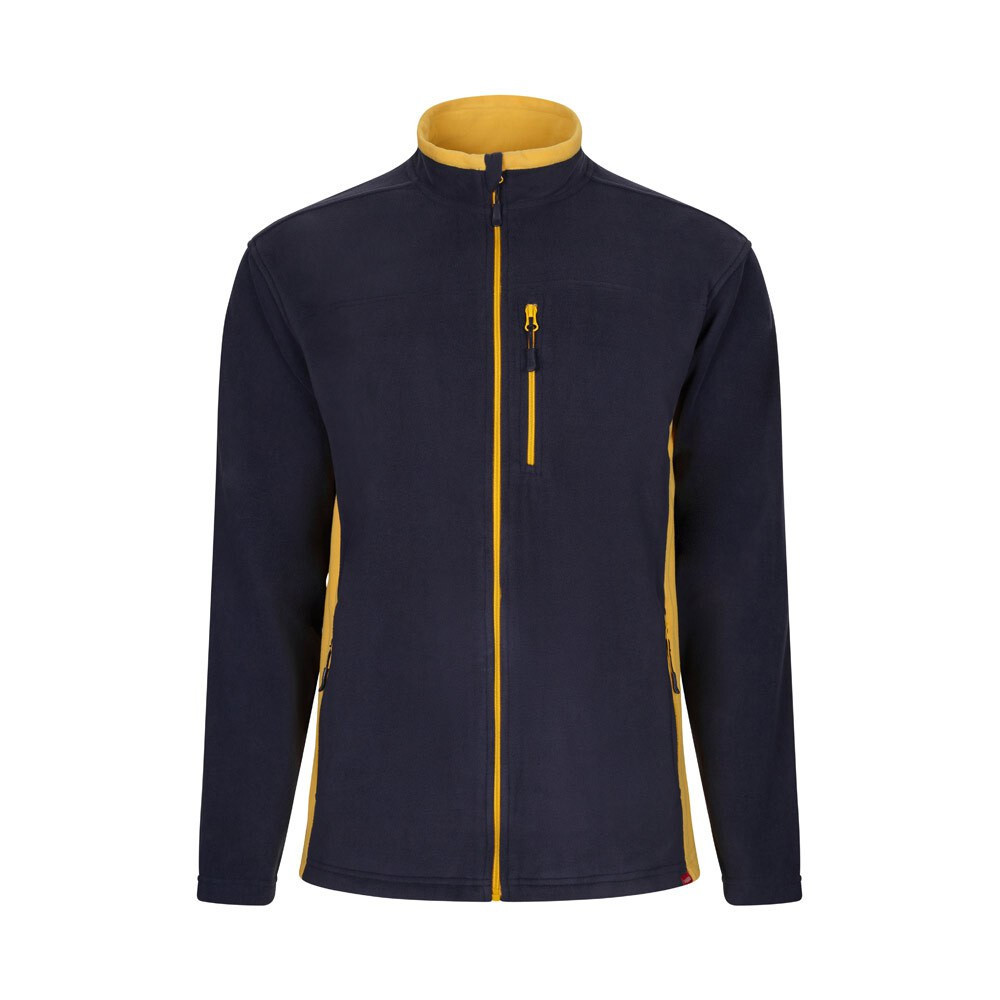 Two-tone fleece jacket (220g/m²) in polyester (100%). Microfiber fabric. With central zip, contrasting color on the sides, inside of the collar and zips. With five pockets (3 exterior pockets, with zip and two interior pockets)