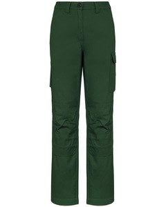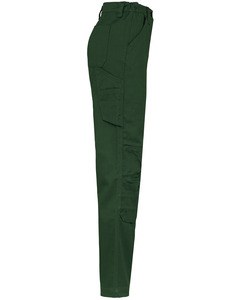 1 pocket with flaps and velcro fastening on the left when worn, 1 double open tool pocket on the right when worn, 2 back patch pockets, 2 knee pad pockets in matching colour with velcro and flap inside to support and adapt the knee pad.