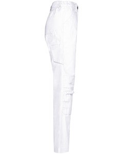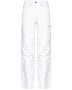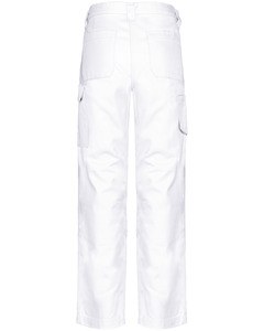 1 pocket with flaps and velcro fastening on the left when worn, 1 double open tool pocket on the right when worn, 2 back patch pockets, 2 knee pad pockets in matching colour with velcro and flap inside to support and adapt the knee pad.